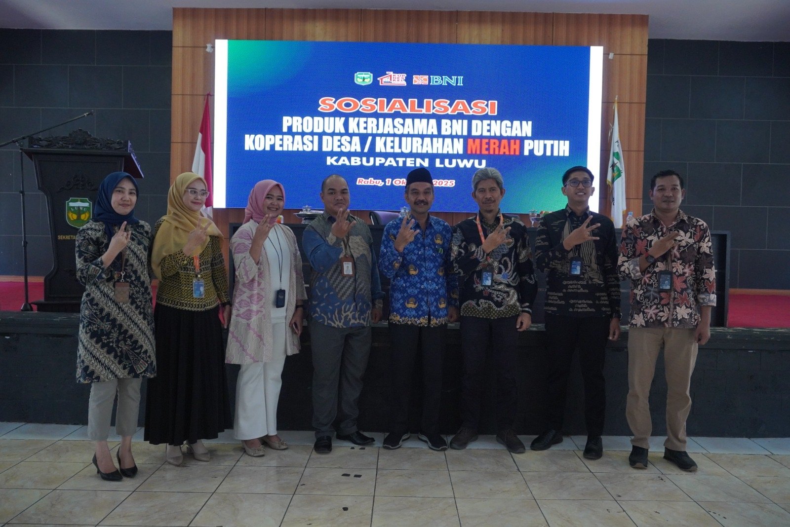 Kabarpublic.com – Pemerintah Kabupaten Luwu melalui Dinas Koperasi, UMKM, dan Perindustrian bekerja sama dengan PT Bank Negara Indonesia (BNI) menggelar Sosialisasi Produk Kerjasama BNI dengan Koperasi Desa/Kelurahan Merah Putih di Aula Andi Kambo, Kompleks Perkantoran Bupati Luwu, Rabu (1/10/2025).