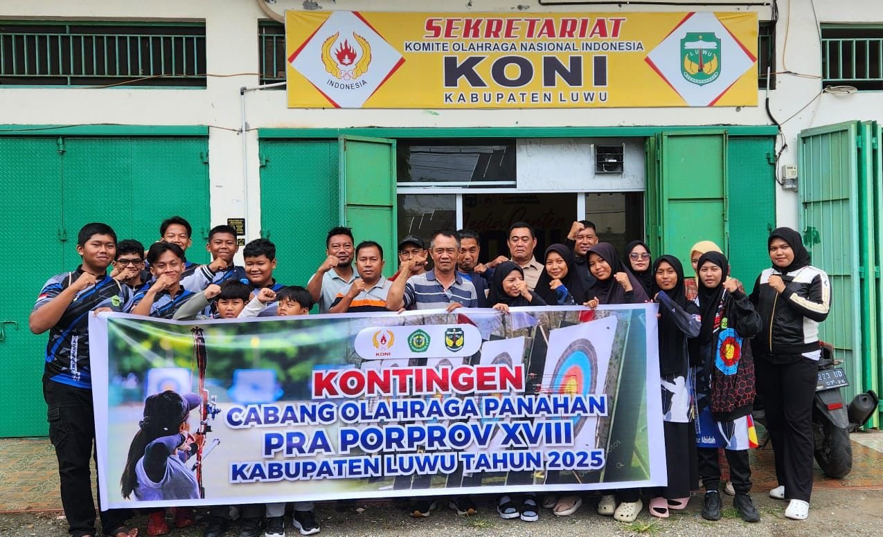 Pelepasan rombongan tim panahan Persatuan Panahan Indonesia (Perpani) Luwu dipimpin langsung Ketua KONI Luwu, Suryanto, Rabu (24/9/2025) di Kantor KONI Luwu.