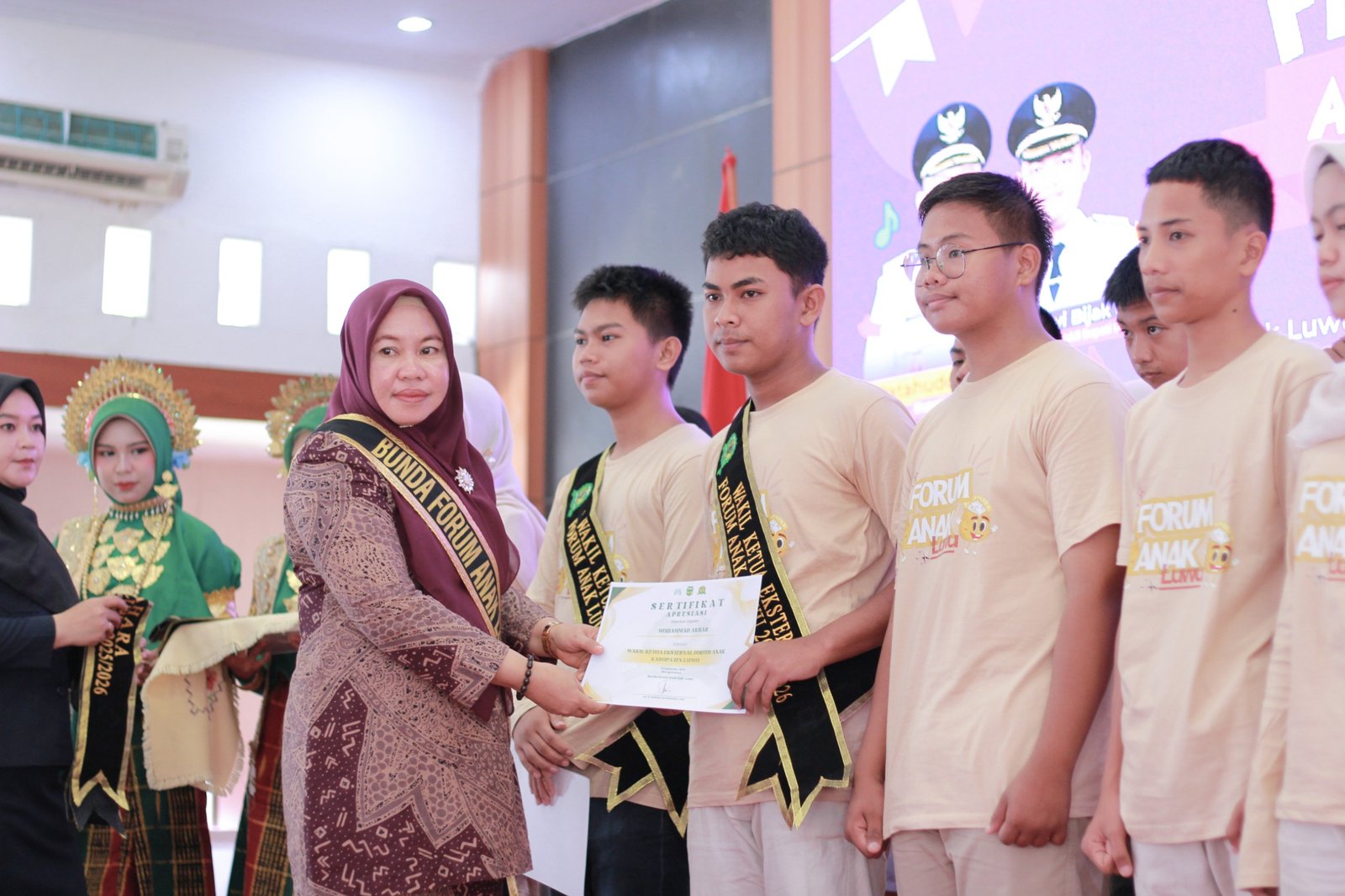 Ia berharap Forum Anak Kabupaten Luwu dapat terus aktif, kreatif, dan inovatif sebagai jembatan komunikasi antara anak dan pemerintah.