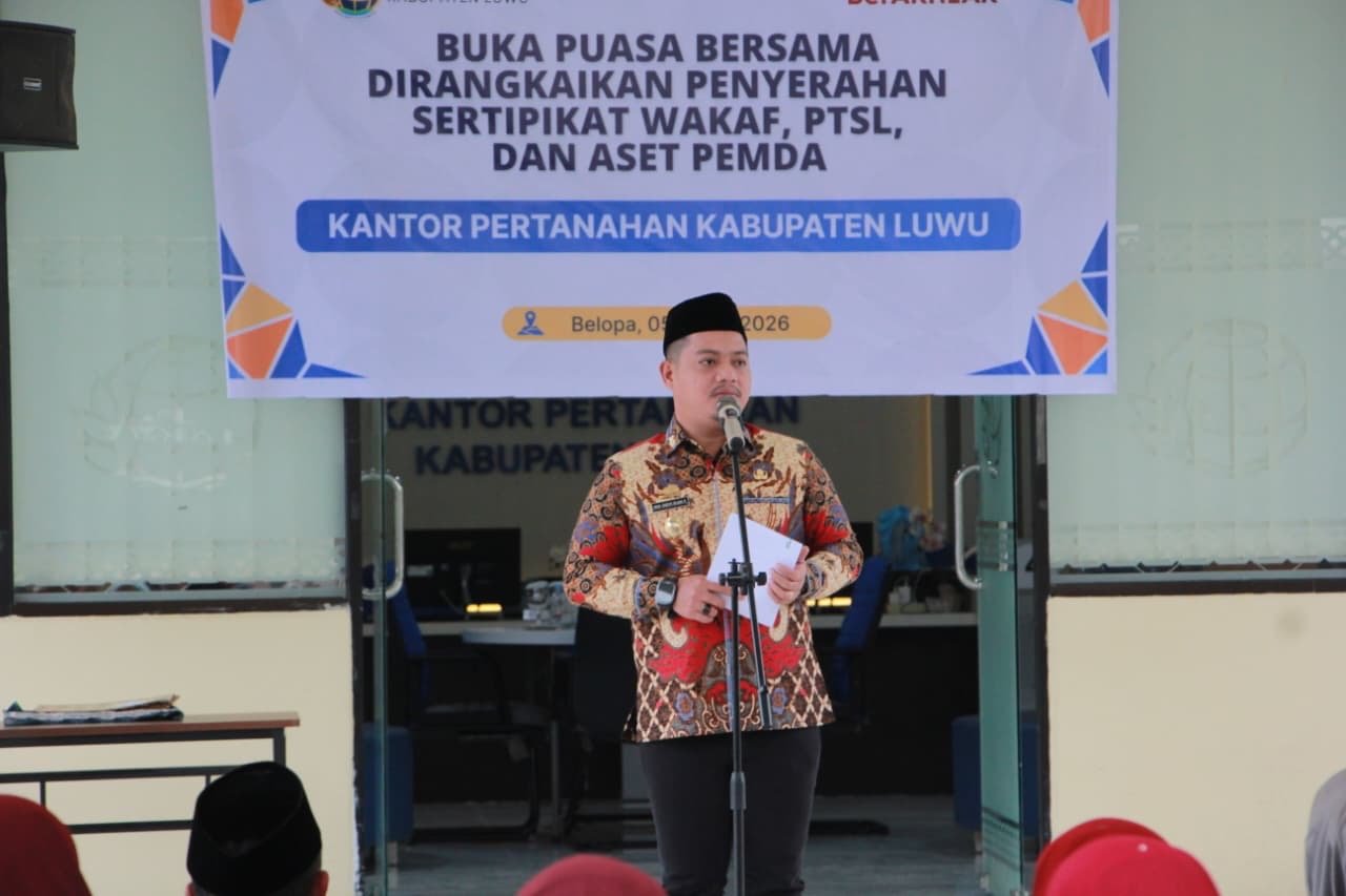 Kabarpublic.com – Wakil Bupati Luwu, Muh. Dhevy Bijak Pawindu menghadiri kegiatan buka puasa bersama yang dirangkaikan dengan penyerahan sertipikat wakaf, Pendaftaran Tanah Sistematis Lengkap (PTSL), serta sertipikat aset Pemerintah Daerah.