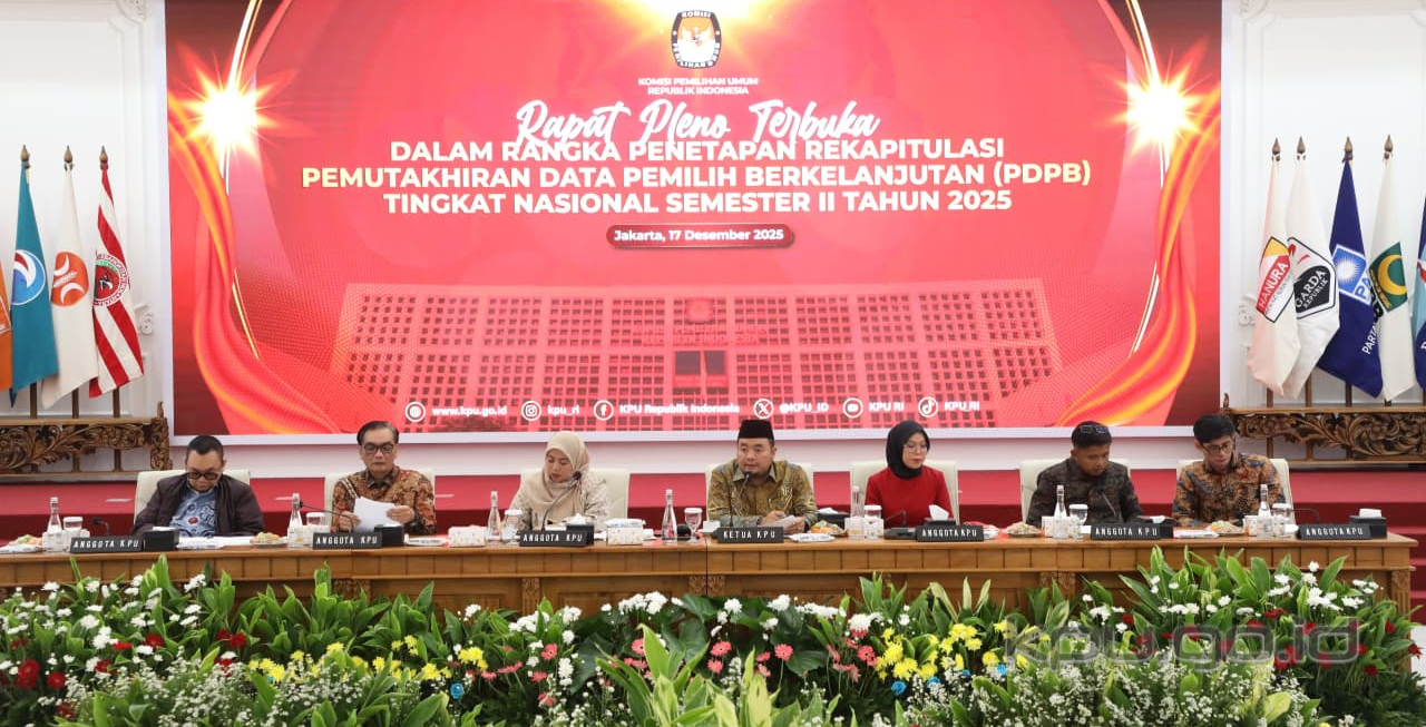 Data tersebut disampaikan dalam Rapat Pleno Terbuka Pemutakhiran Daftar Pemilih Berkelanjutan Tingkat Nasional Tahun 2025 yang digelar di Ruang Sidang Utama Lantai 2 Kantor KPU, Rabu (17/12/2025) lalu.