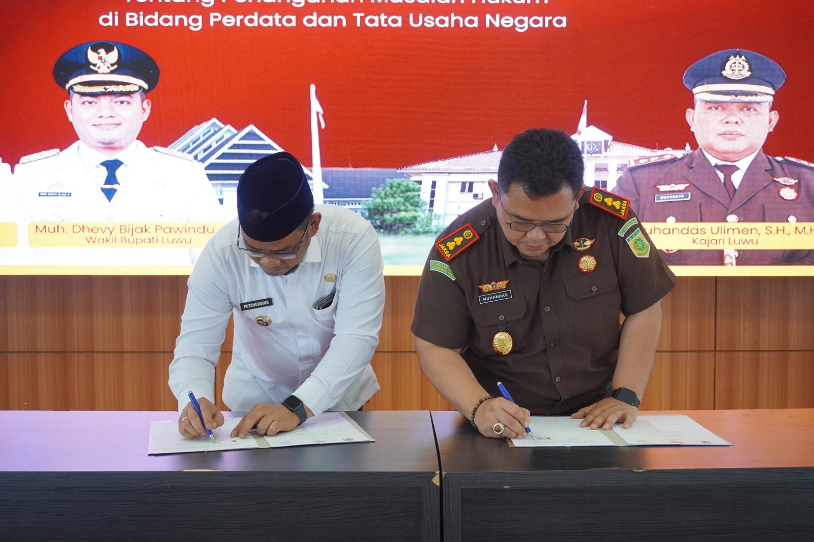 Penandatanganan dilakukan langsung oleh Bupati Luwu, Patahudding, dan Kepala Kejaksaan Negeri Luwu, Muhandas Ulimen, sebagai bentuk penguatan sinergi antar lembaga, yang berlangsung di Ruang Pola Kantor Bupati Luwu, Rabu (28/1/2026).