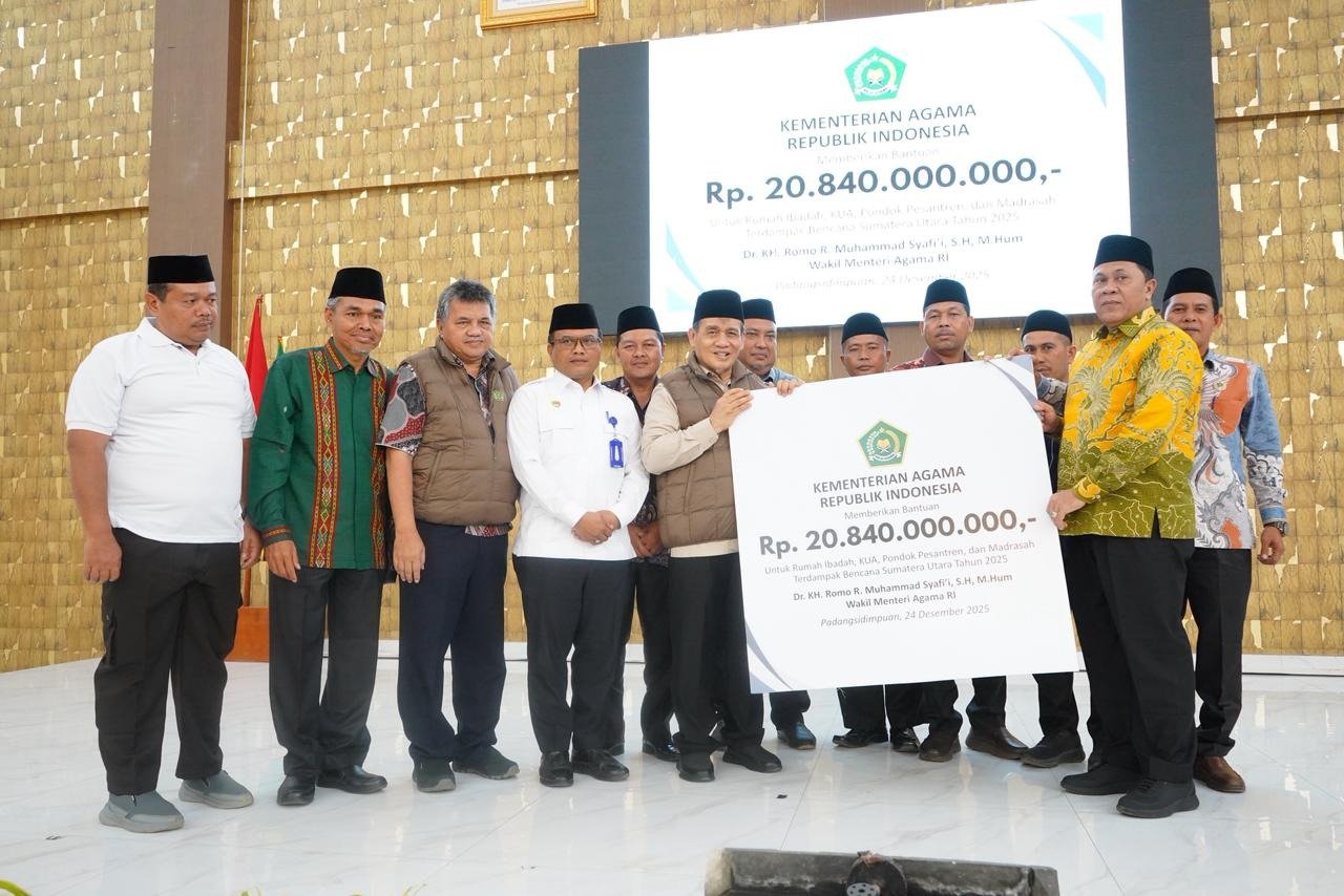Dana bantuan tersebut akan digunakan untuk rehabilitasi rumah ibadah, Kantor Urusan Agama (KUA), pondok pesantren, serta madrasah yang mengalami kerusakan akibat bencana banjir.