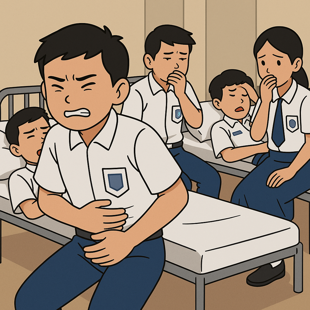 Salah satu siswa, Fahri Finoza, mengaku mulai merasakan gejala seperti sakit perut, pusing, dan muntah-muntah sekitar satu jam setelah makan.