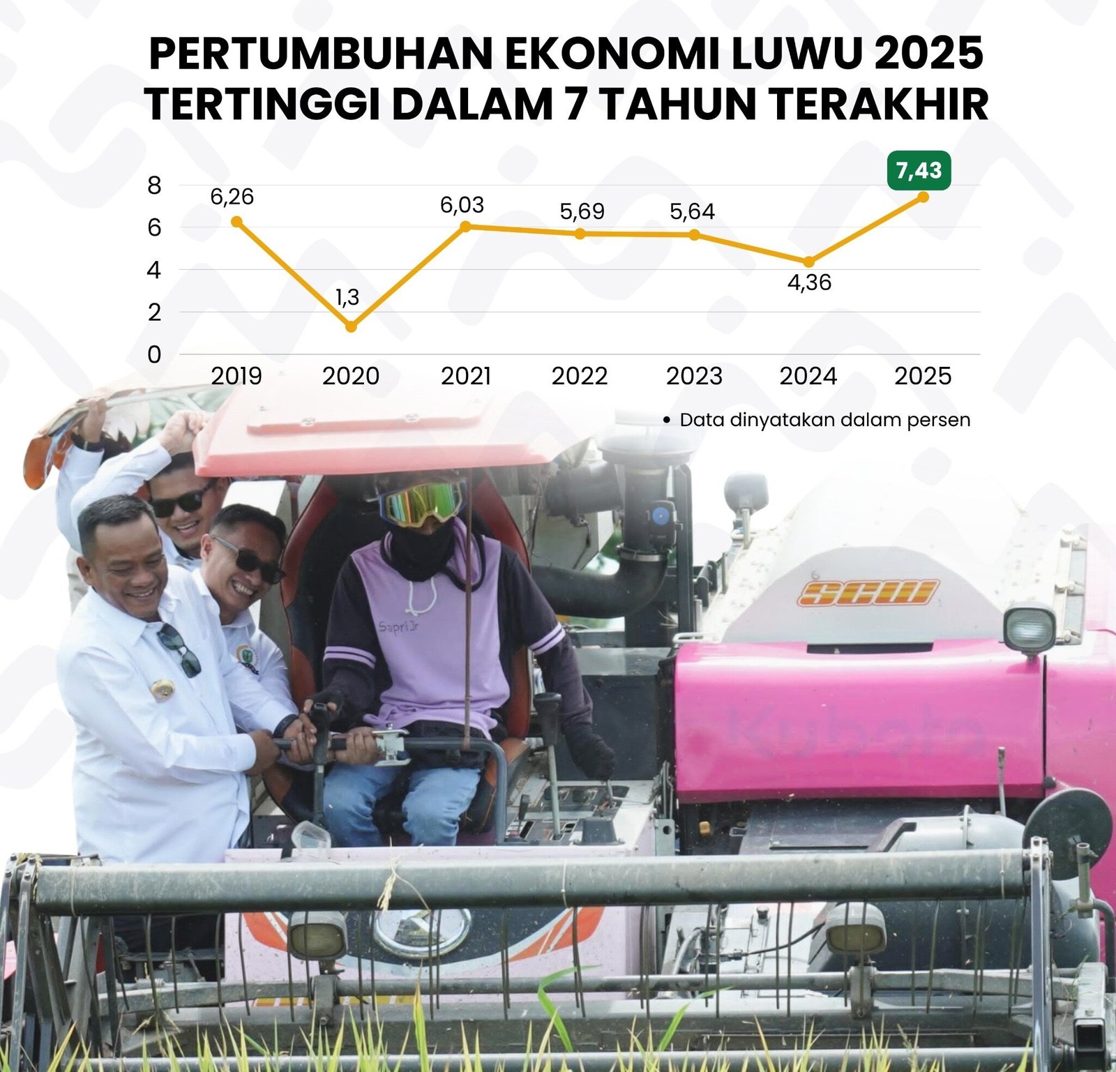 “Capaian pertumbuhan ekonomi ini menjadi indikator bahwa arah pembangunan daerah berada pada jalur yang tepat. Pemerintah akan terus memperkuat sektor unggulan, khususnya pertanian, sekaligus mendorong peningkatan investasi dan daya beli masyarakat,” ujar Patahudding.