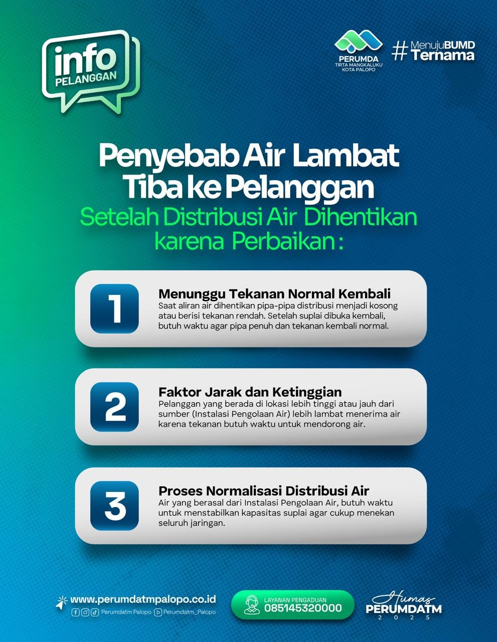Humas Perumda TM Palopo, Wiwien, mengimbau pelanggan agar memaklumi kondisi tersebut. Ia juga mengingatkan bahwa masyarakat dapat menyampaikan pengaduan atau kendala melalui layanan resmi Perumda TM di nomor 085145320000.